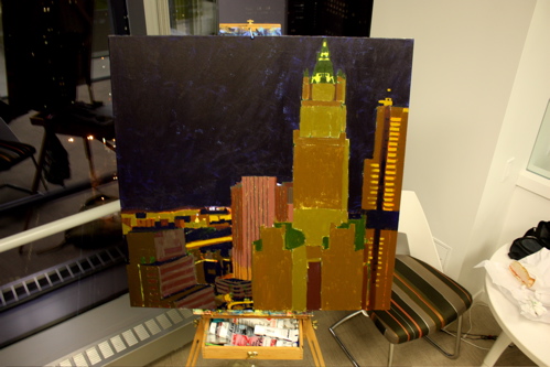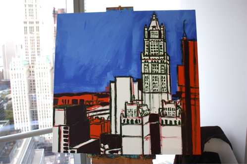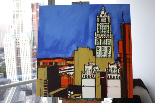 Removing the brights from the Woolworth Building. There is something about layering paint that creates a different feeling than a pure mix and apply situation.
