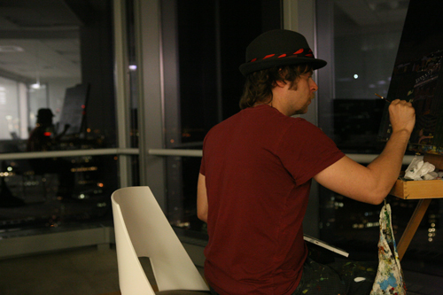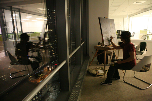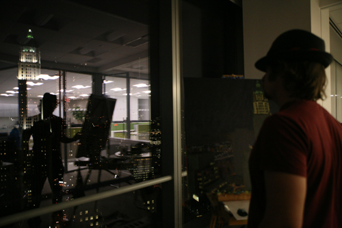 Day two was more of a night session, at WhenTech’s 7 World Trade Center office from the 34th floor. With the structure in place, this session became a reductive process – removing all natural light. The next session will include painting the light created by man into the dark city scape you will find after the jump.