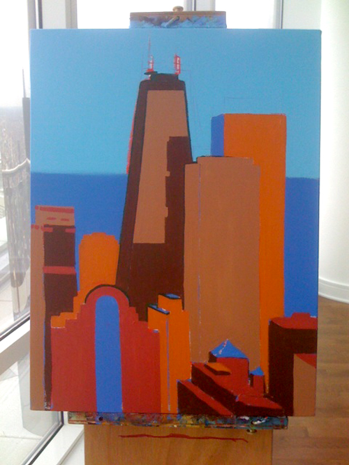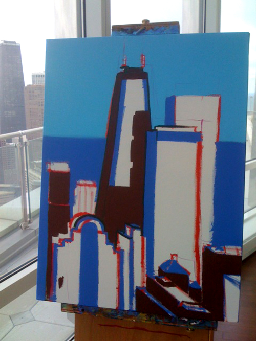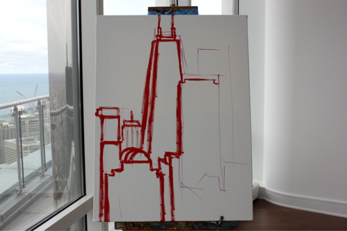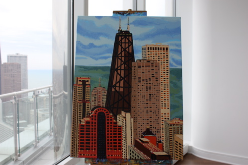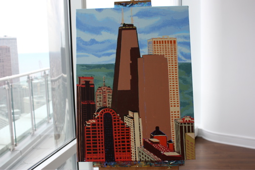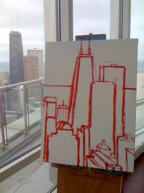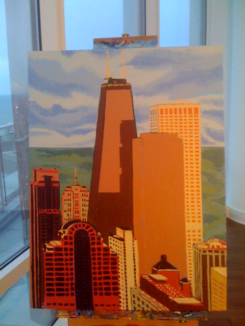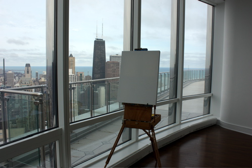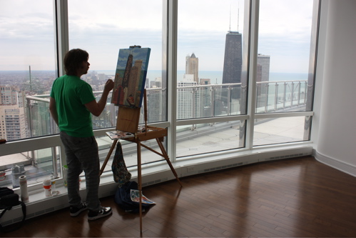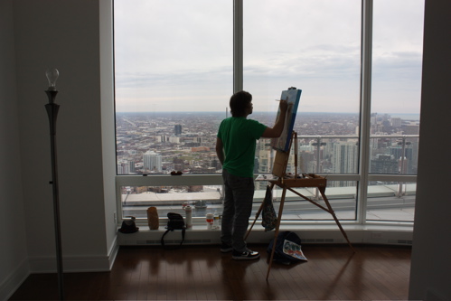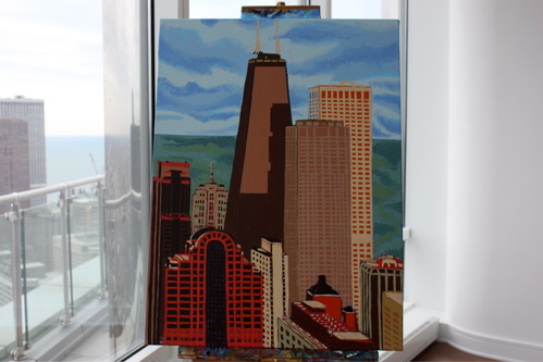 When I eventually left The Trump Org., I was sure to contact Tere and pass along my new contact information – she said be in touch. Well, I emailed her two days before my trip, and she responded within two hours offering a stunning view from unit 51A – which comes with a 5000 square foot sky terrace (!!!) Here is a stroke-for-stroke recap of my John Hancock Center painting from the Worlds 6th Tallest Building.