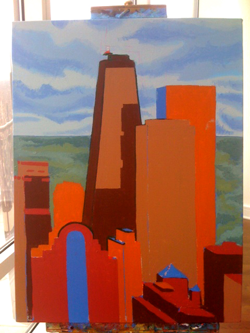 Creating a similar brown tone capturing the building immediately in front of the Hancock Tower… it was challenging due to the tonal similarities from plane to plane.