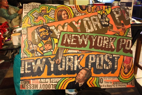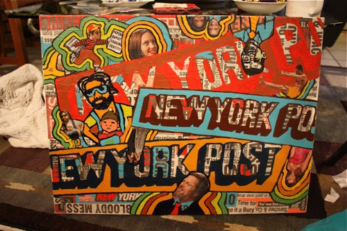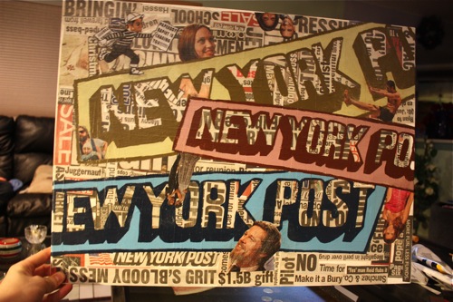 A fully collaged surface, ready for painting. There is something I find so visually appealing about the NY Post Masthead, one I often recreate.