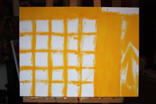 Red, Yellow, Blue – a primary color rotation complete… beginning to establish the form. At this stage, my objective was to build-up a solid foundation.