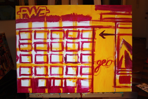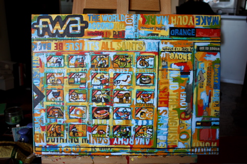 As you know, The FWA is a project that has evolved over many years and its been great to see this painting evolve too, as I have been watching it grow via your twitter feed… most exciting it has been too! On March 1 2010 the existing FWA website will close and disappear off the face of the web so it gives me great heart to know that you have captured the real essence of the site and now we shall be able to proudly display your painting in The FWA office as a historical mark and point of reference.
