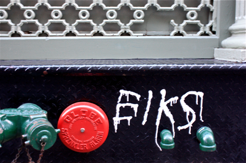 I climbed onto a flower planter to catch this piece of urban chicanery. The background looks like it was a filter, but, in fact, simply represents the filter of the eye.