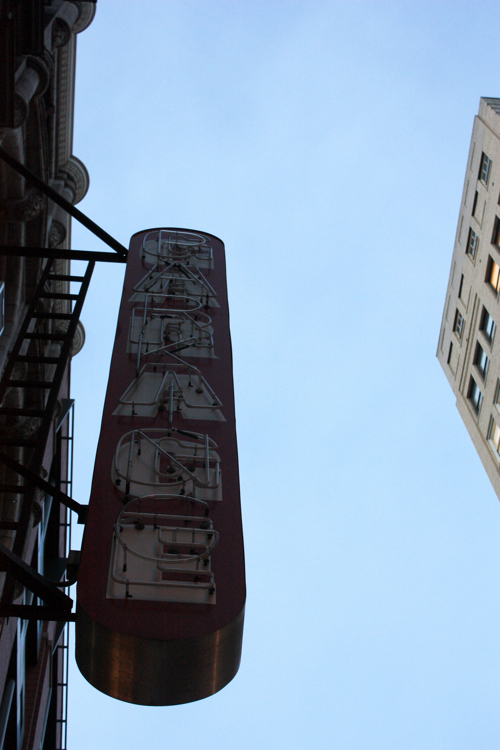 Zooming in, catching a tighter frame. Nearly whited out blue. Neon sign, so red, it is in fact pink. Try to paint this, and miss any hue by 1/100000th of a nano-stroke-pigmentatoration and it doesn’t make sense.