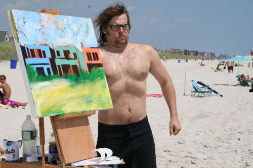 Two buildings laid out. Me adjusting my glasses. People sunning. One guy came up to Ari and said they hadn’t seen anyone paint on the beach in the ten years they lived there. Old is new.