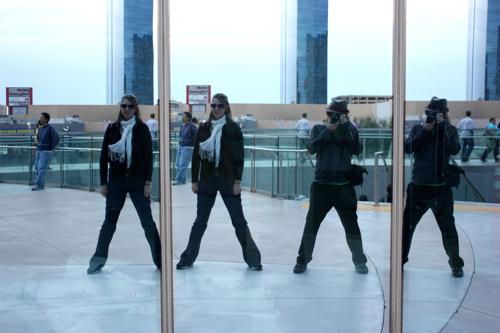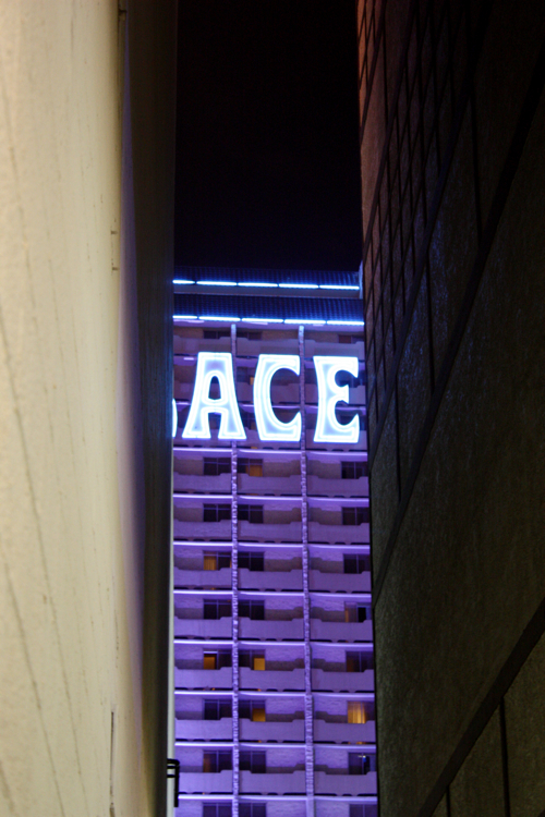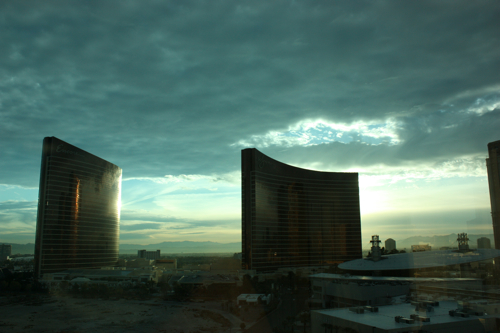 Independence Day style sky at about 6AM, Wynn and the Encore. While dining at the Encore, I wondered out loud how long the contemporary, well-lit red casino design would last. The hostess (Asian woman) interrupted me to say, “Steve Wynn likes it like this, because Asians like this lighting and color scheme, and they dump the most money into his casinos, especially in Macau.” I shit you not. Classy.