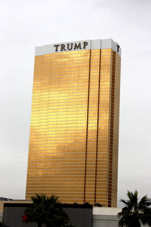 Trump, which is behind the footprint of the old Frontier, is somehow visible dead center from the Southern part of the strip.