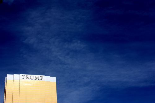T-Rump from a distance with a rolling sky, high contrast, making things look artsy. Thank you iPhoto sliders.