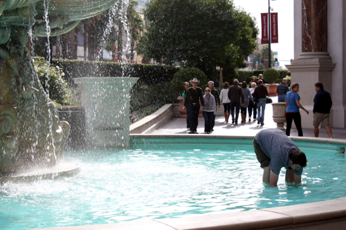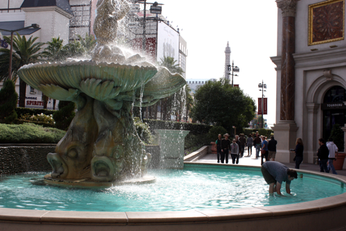 Living the Hangover, this guy proceeded to elicit the attention of security. Moments later, he fell out of the fountain and ran away in a shuffle I can only close my eyes, see, and laugh about.