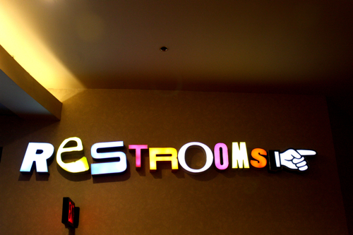 The Rio, post brunch restroom sign art entitled, “You will need me momentarily in a serious way”.