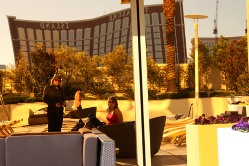Artist Lora Sanders ripping it up, Wynn club style. I had to drop some nastiness to get us in there, but hey, how many cool cats do you know that wear an ear piece?