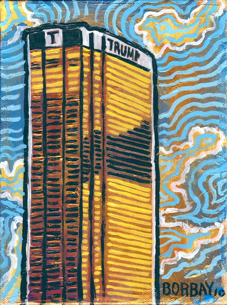 Vegas. It is one of the sexiest words out there. Say it out loud, Vegas. It’s Fear and Loathing, Swingers, a Hangover, Sin, Money, Heathen lifestyle = hotness. Here is a small painting of the Trump International Hotel and Tower, and below, a shot of my gorgeous fiancé.