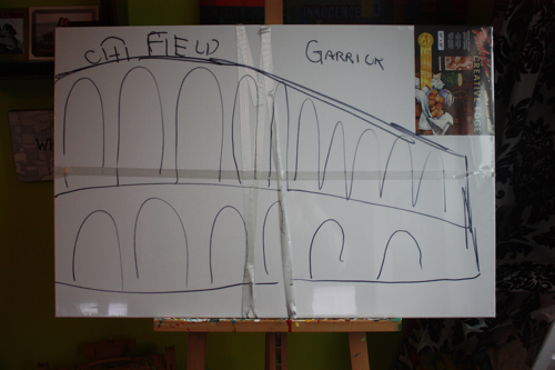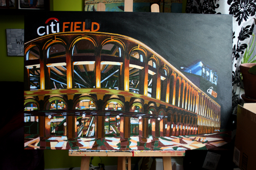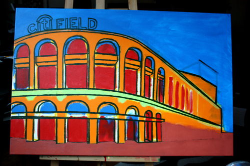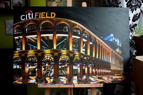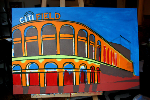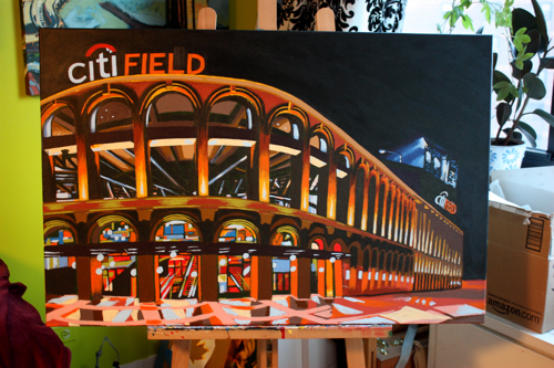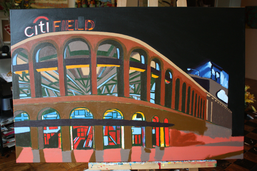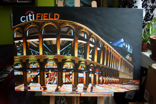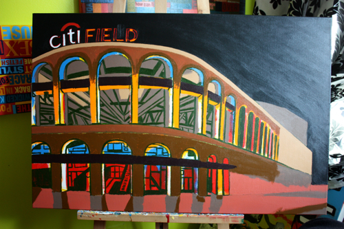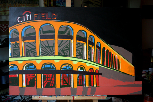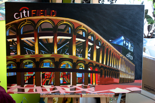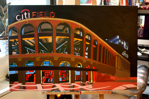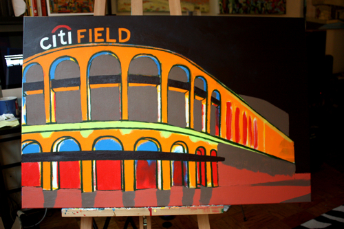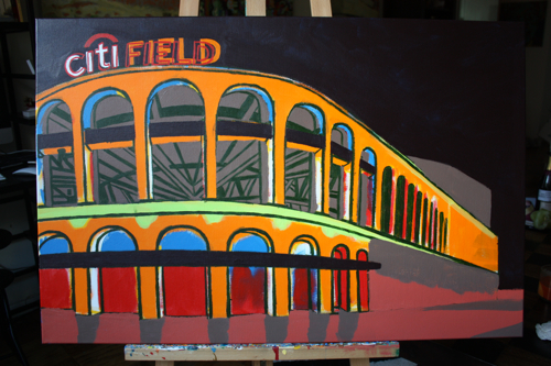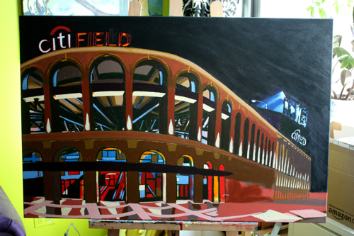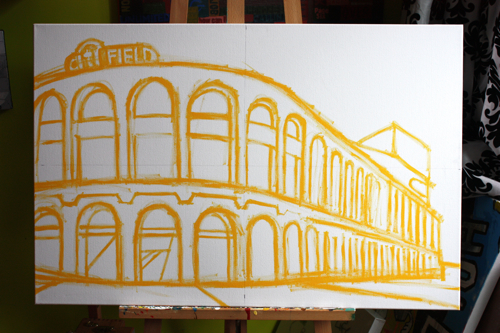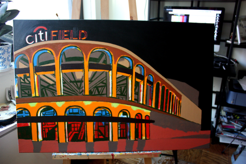 RBI bunt. Redrawing the Citi Field sign for a better sense of perspective, and adding the interior girders. Love that word. Girders.