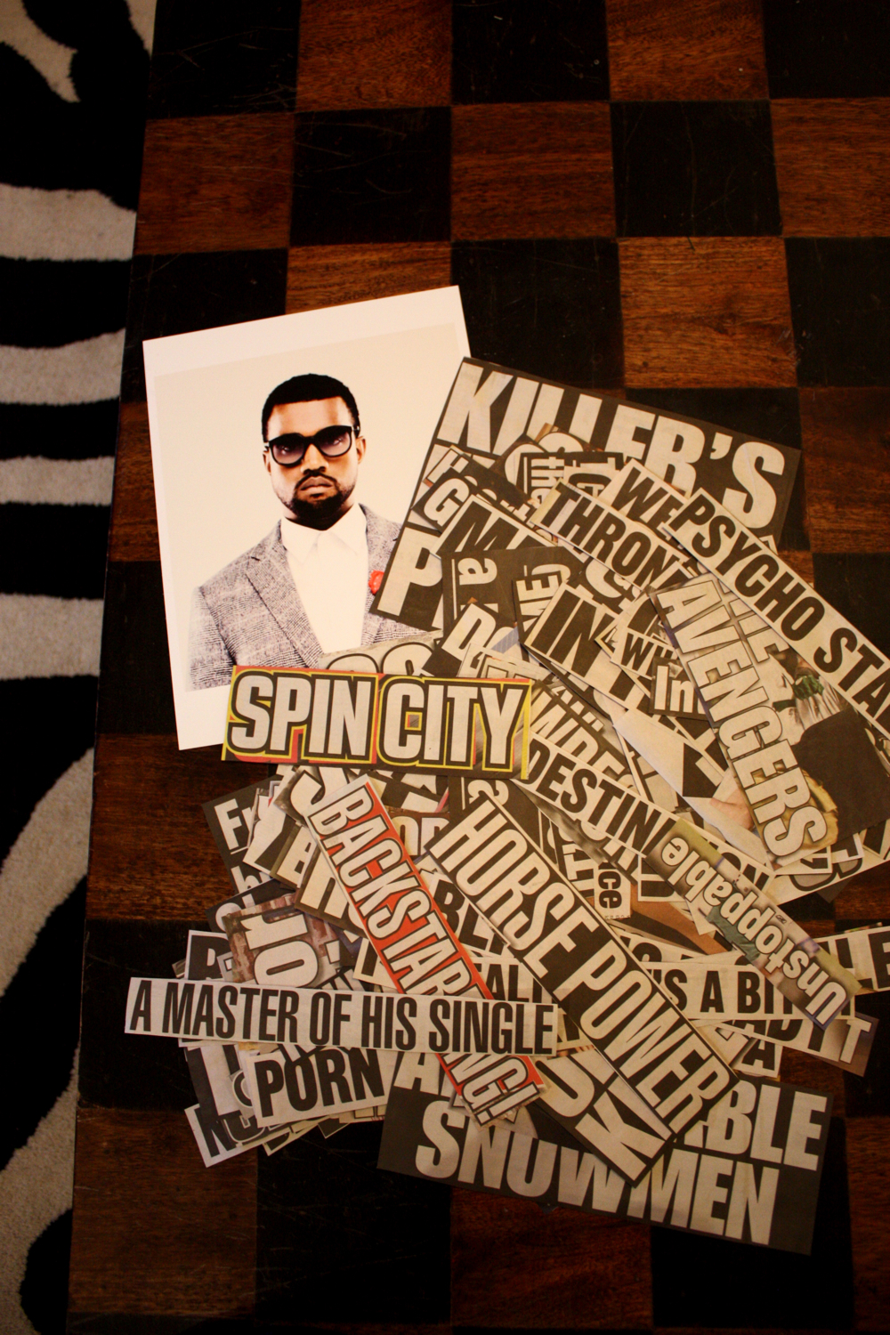 A bizarre 12″X30″ Kanye study, which I created from both Jeremy’s Kanye drawing and William Murphy, the star of Jeremy’s new series.