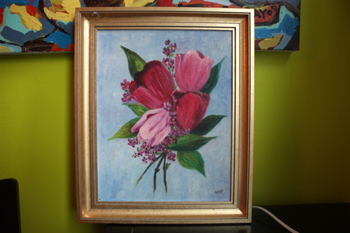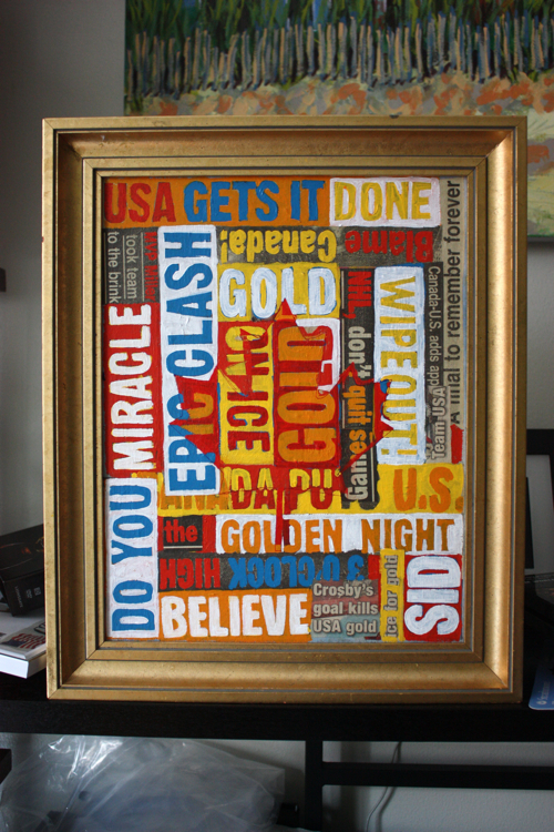 I decided to buy a painting at the Goodwill to use as the base… I felt a gold medal painting required a gold leaf frame.