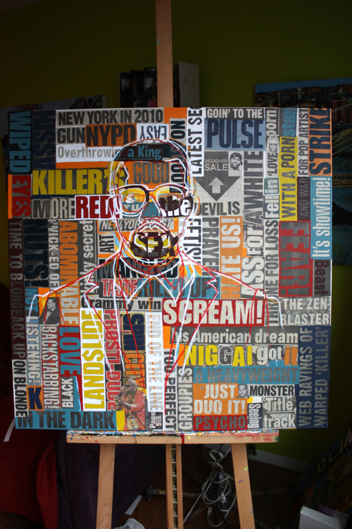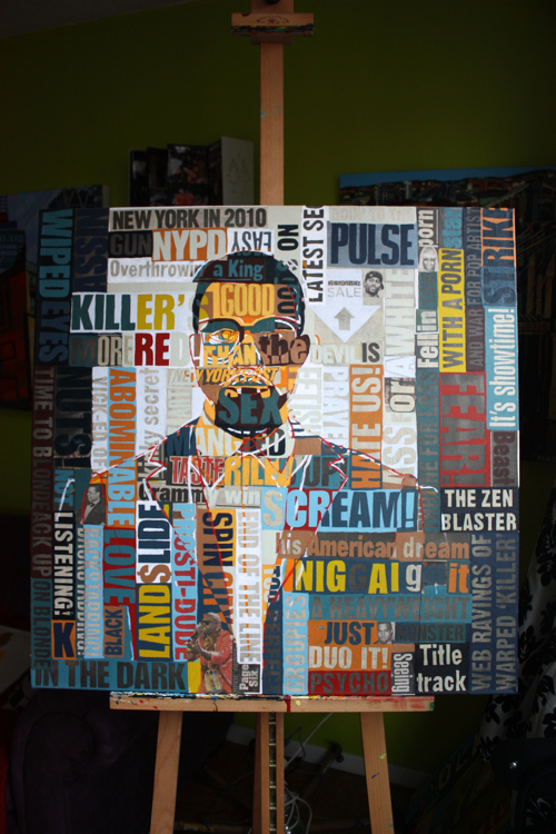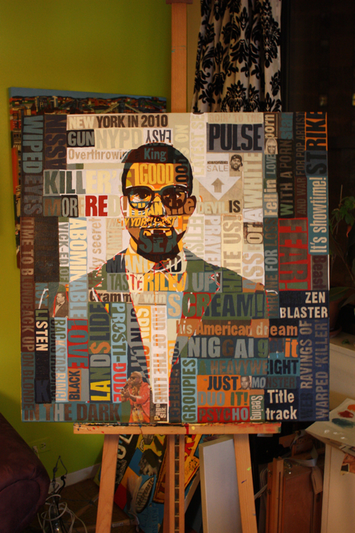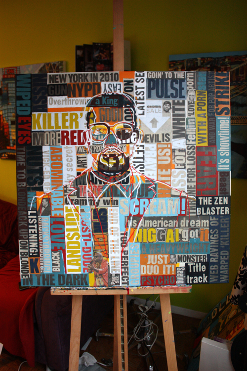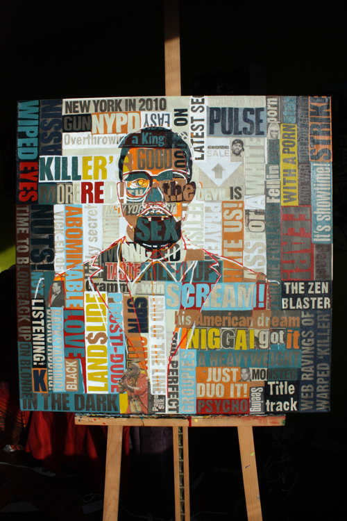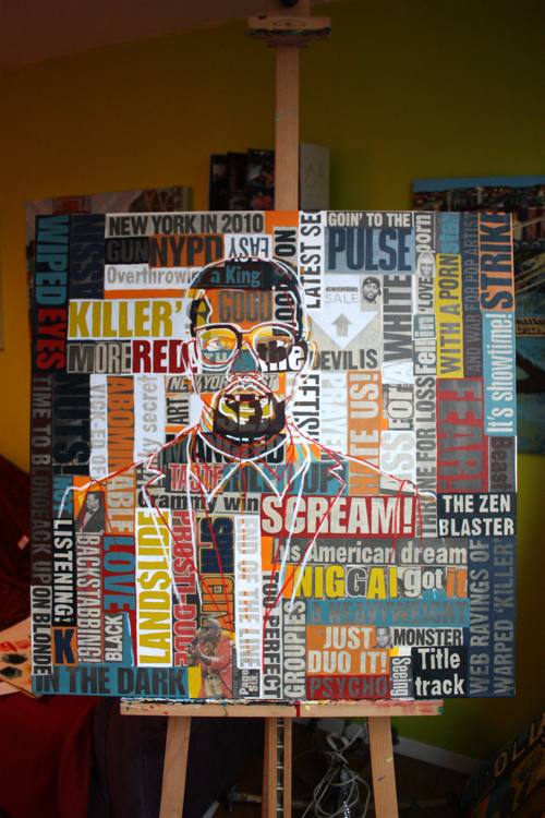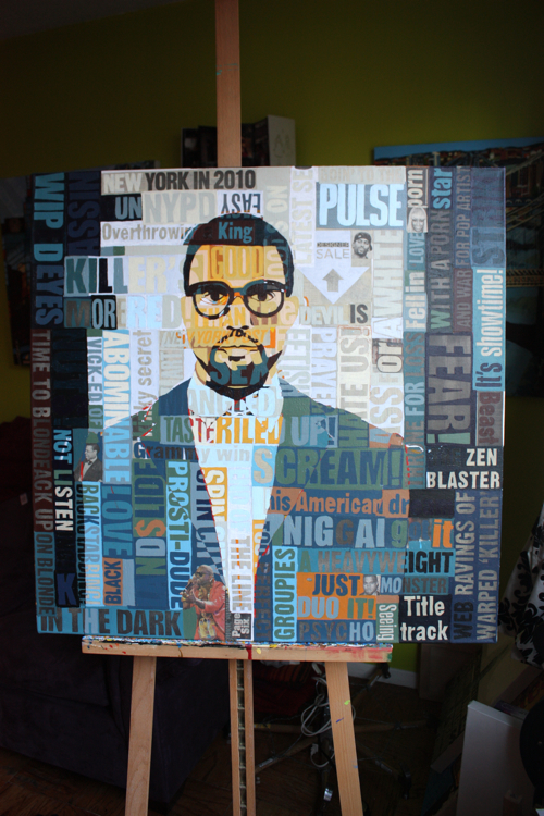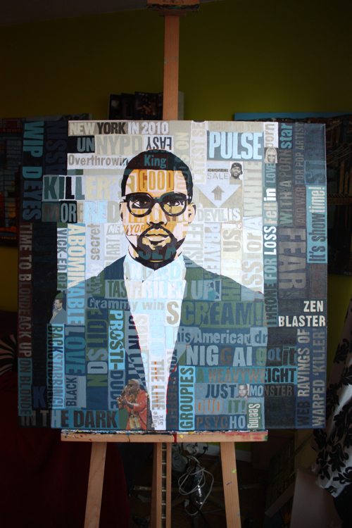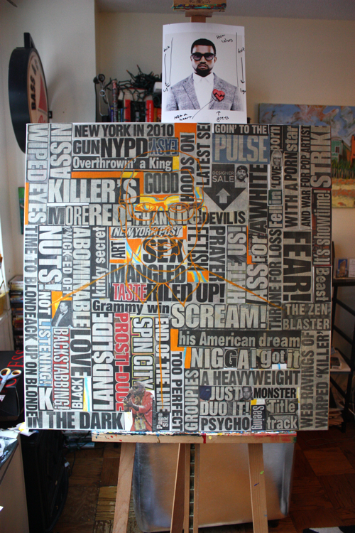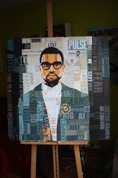 There is an artistic continuity across all mediums. Kanye was a logical portrait subject, following his HAM partner Jay-Z. As a collage artist, the concept of standing amidst, alongside, in front and behind your words is captivating; who better to explore than rap artists?