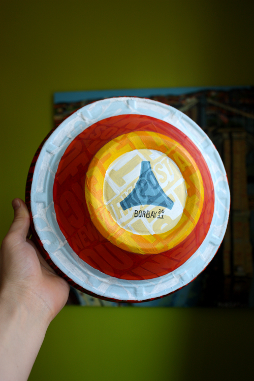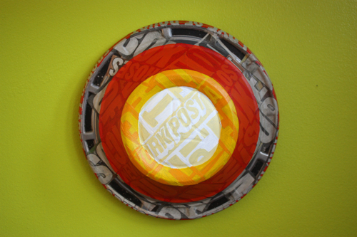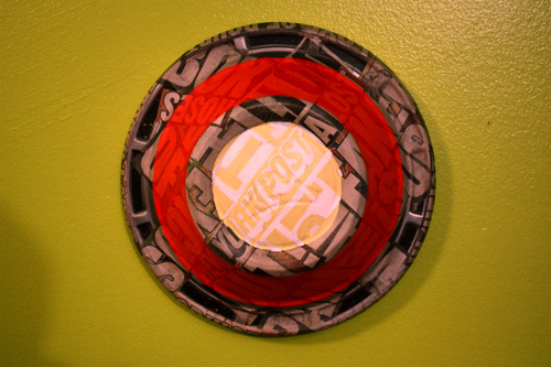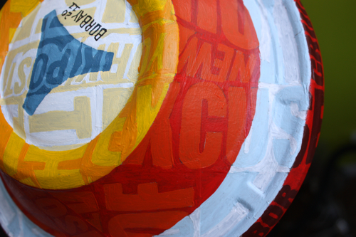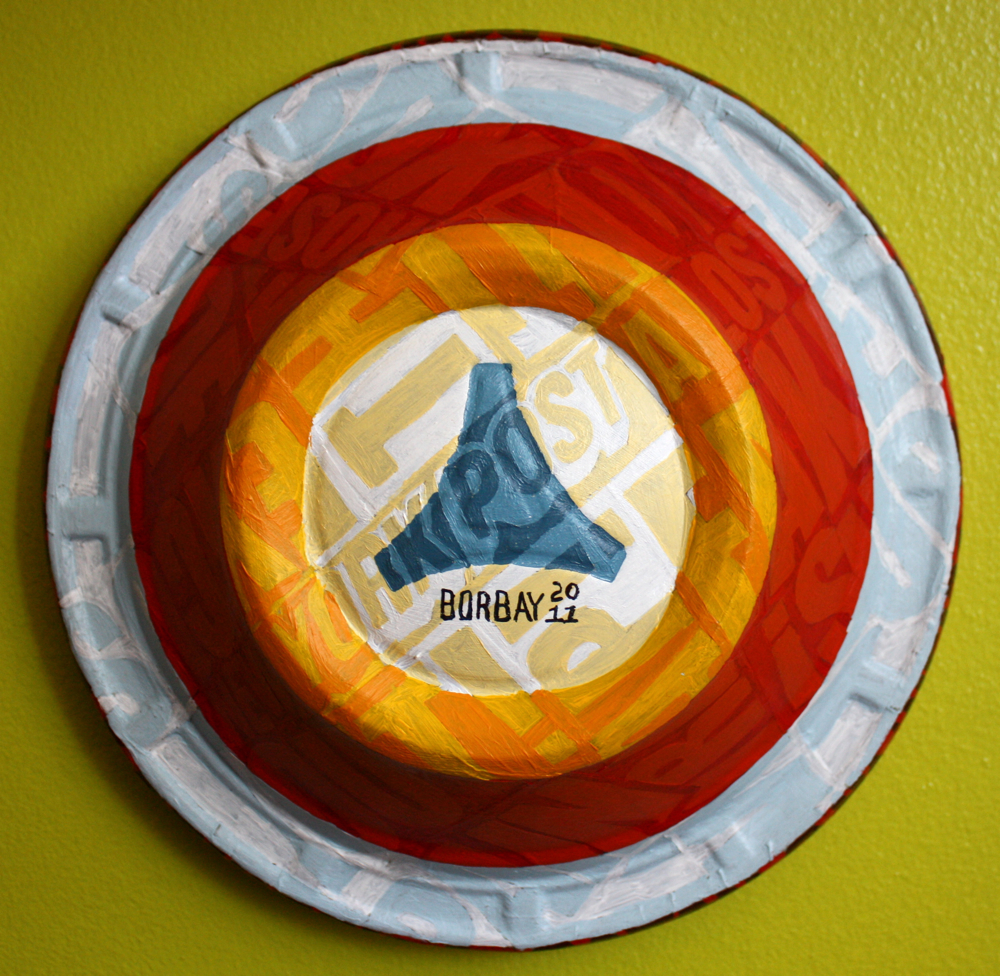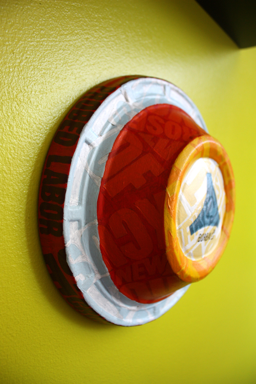 Eliminating the pigmented news print on the inner ring with titanium white, and cadmium red on the outer.