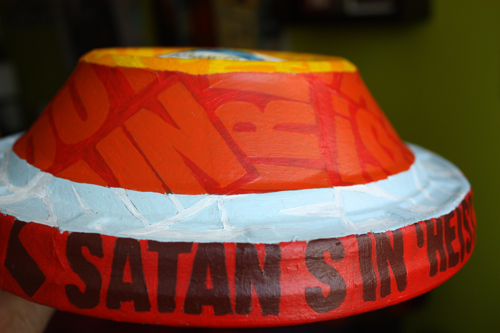 In direct conflict with my IMDB profile (6’3″ 220 pounds) I am 5’9″ 180, so this is the size perspective shot. The cap is 10″ in diameter.