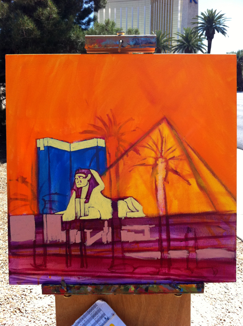 The Luxor, Las Vegas, shoots a light beam into space. Space. Taking this, and the fact that we stayed there into consideration, I decided to end the trip with a Luxor painting.