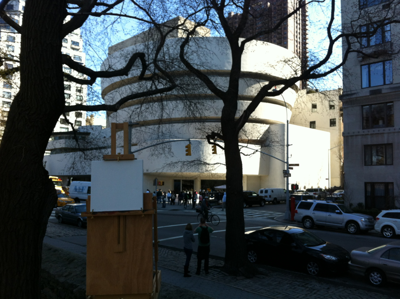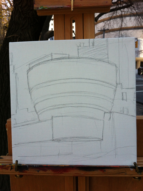Spring is springing, and so, the outdoor painting season has begun! To kick things off, I decided to paint The Guggenheim and The Carlyle. Enjoy the video above, and a few process snaps along the way.