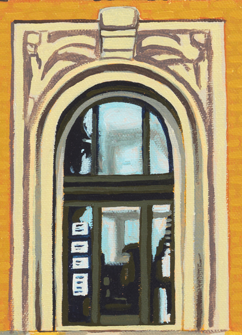 In another departure from my standard process, I painted the windows with a wet palette of six colors.