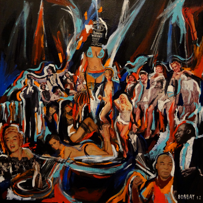 Immediately upon completion, Absinthe’s stars The Gazillionaire and Penny Pibbets auctioned our works. Carson Kressley won my painting, Tia Carrere nabbed Zepeda’s and Ari’s went to a pair of gallerists.