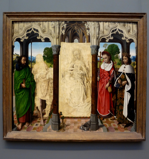 Scrape away that painting… love the initial drawing layer. This is very modern looking, despite the poor choice in floor tiles.
