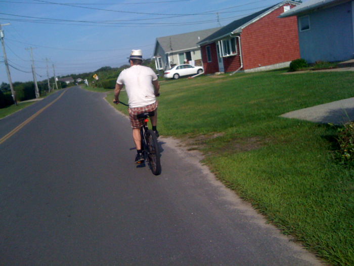 We then rode bikes into town to eat a cheeseburger at 10AM. Sustenance for a long day of painting. We got lost on the way home to keep trim.