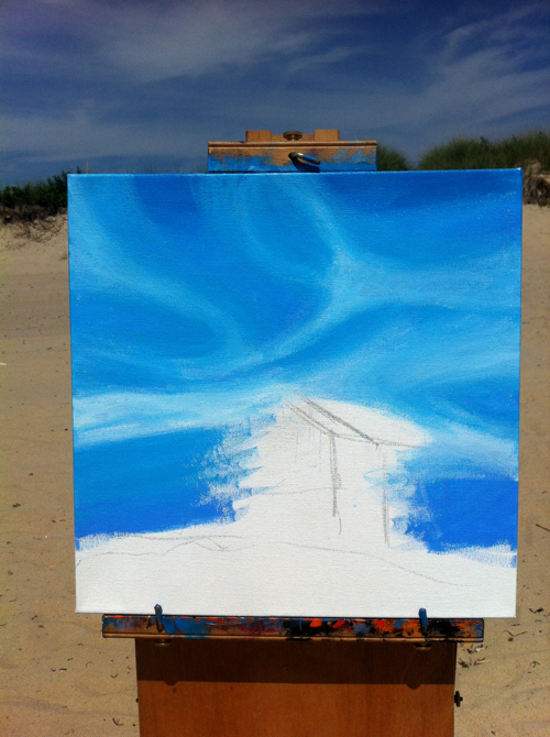 For the entire painting in one minute, please check out this video. Watch for the painting, stay for the sumptuous moving clouds and kids dog-scootching down the dunes. A big thanks to Nelson Downend, Jr. and Ahmed Mahmoud for the luscious track. And now for what comes next.