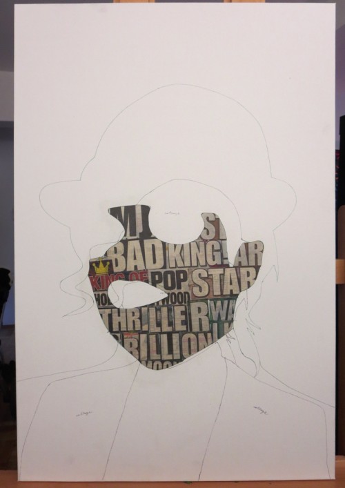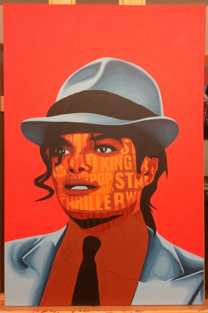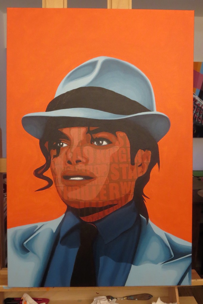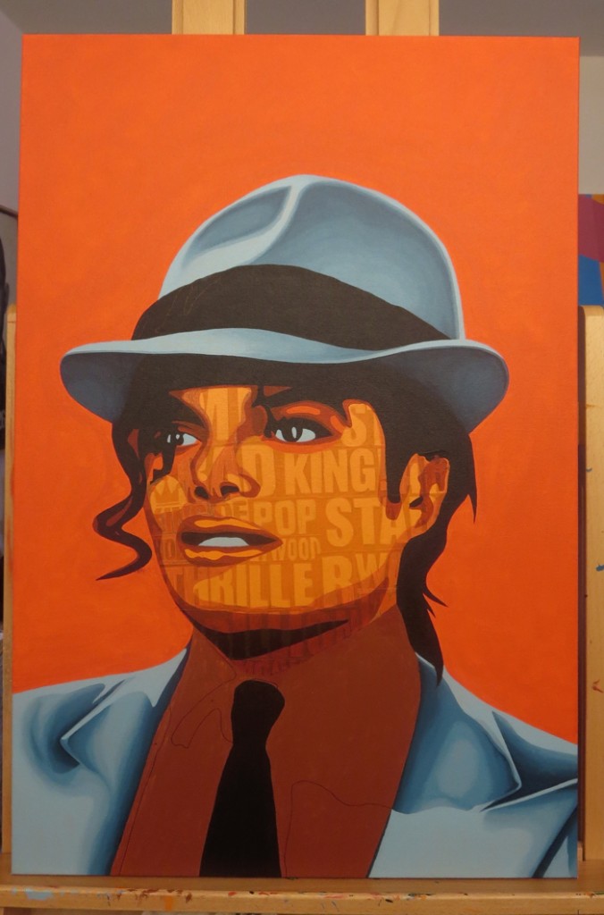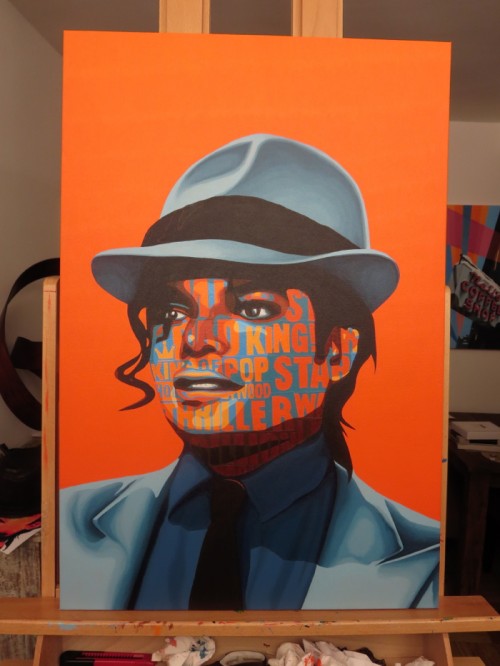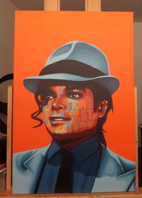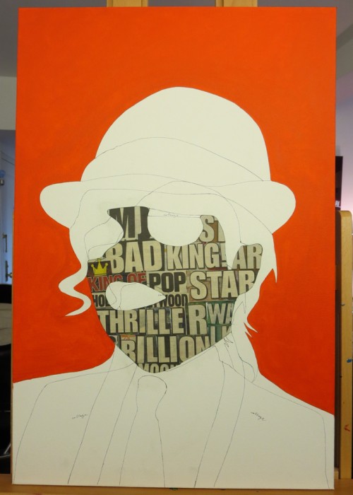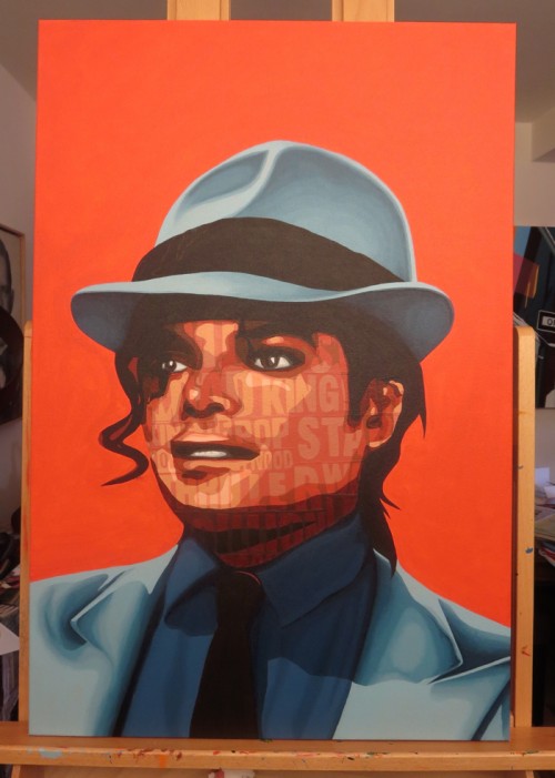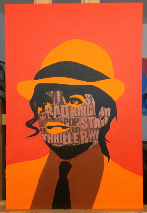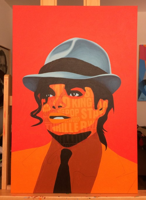 I give you — Michael Jackson. You’ll notice the difference in the final image and the working drafts… this was professionally photographed. I work under natural florescent light in the studio, but they tend to throw a darker/warmer spectrum — so the leap to the final always reveals a great deal.