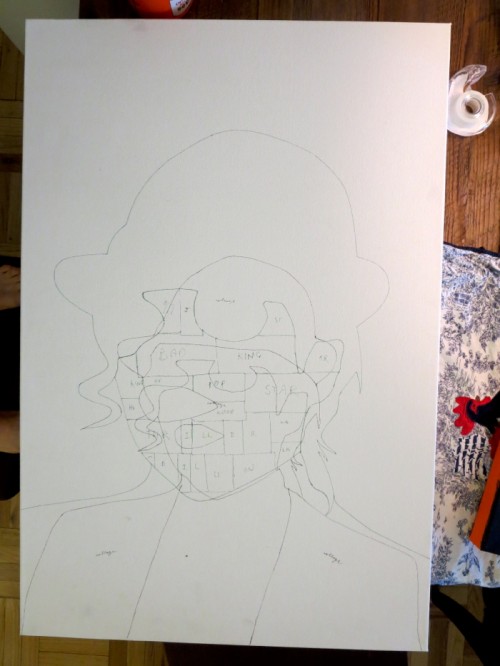 The composition changed in the first review… here is the ‘collage map’ of MJ’s face.