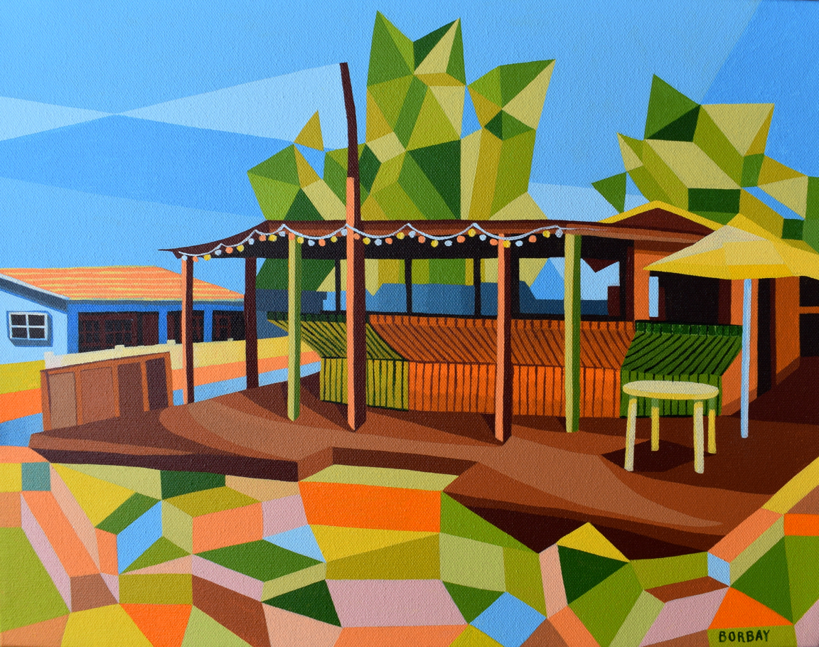 Santanas Exuma Painting by BorbayIntroducing my final Art Exuma painting — the world famous Santana’s Grill Pit, located on Little Exuma. After Erin drove across the island to have lunch here with Jeanne, my Mother-In-Law, she returned letting me know this was a spot to paint. She was, as she often is, 100% on the money.