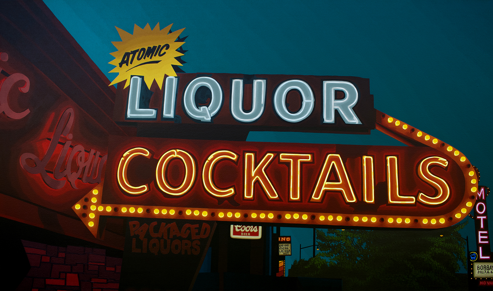 Vegas baby! I made my way back to the promise land for a five day, solo painting adventure. This time, I painted Atomic Liquors, on Fremont Street.