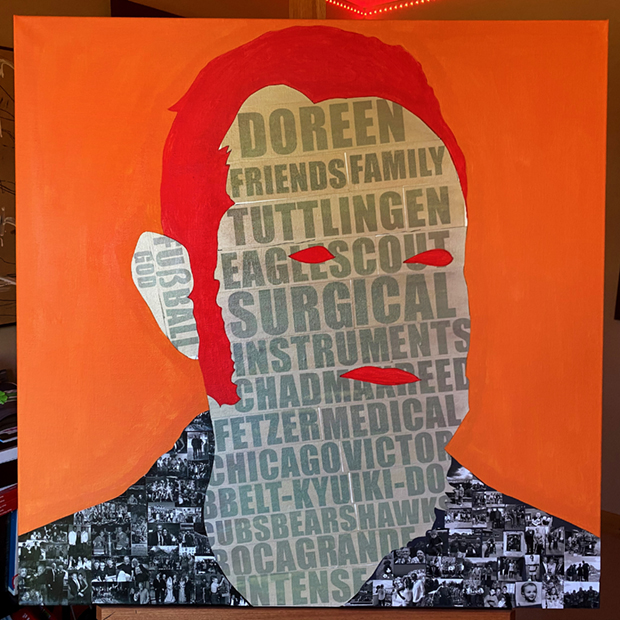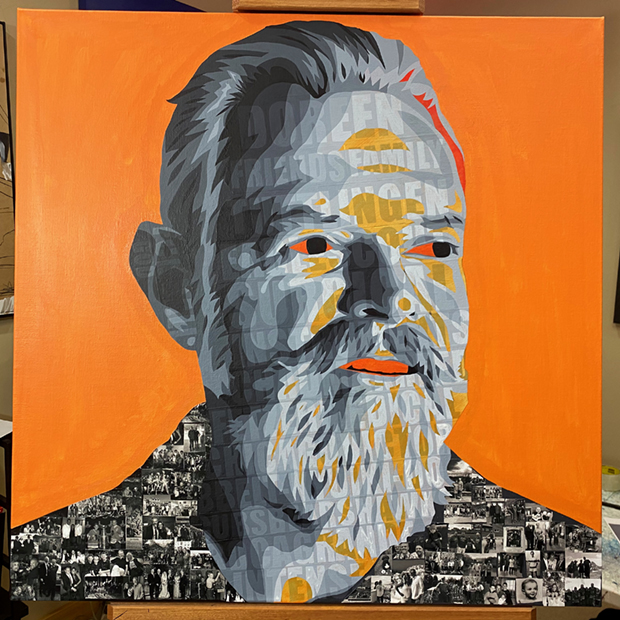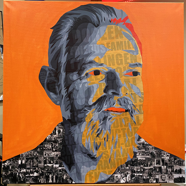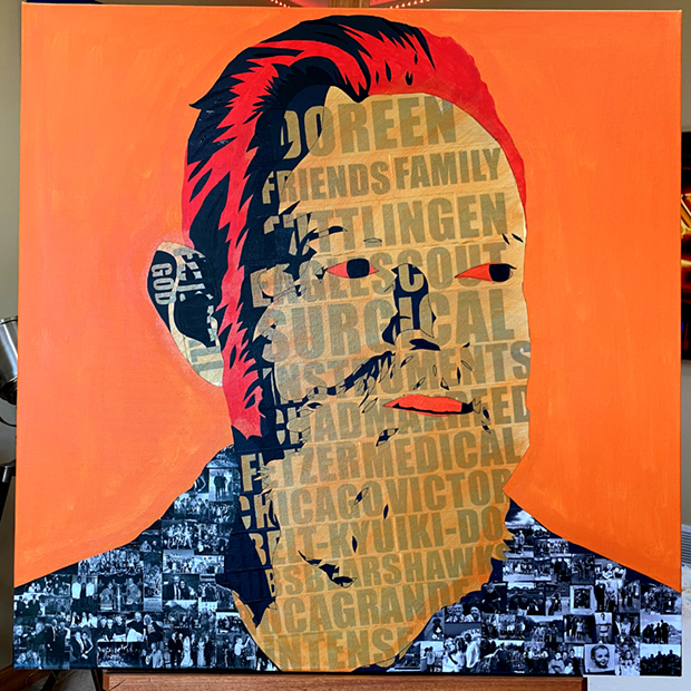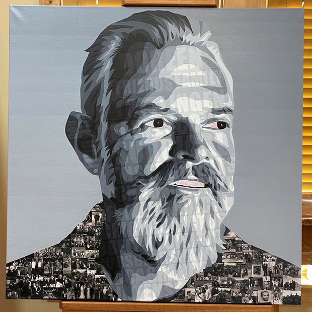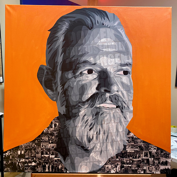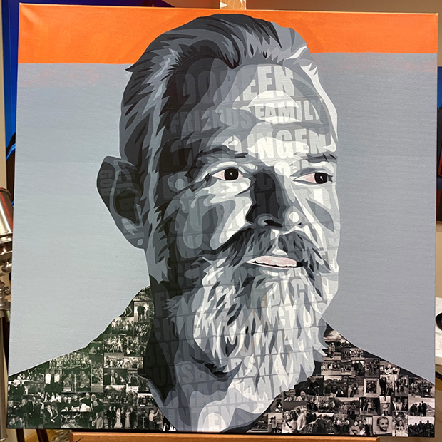 I’m delighted to share my latest portrait — ‘Bene’, an 30″X30″, Acrylic Collage-Painting on Belgian Linen. A dear friend, Bene and I met out on the golf course… and, for the record — if I’m within 15 strokes of Bene, it’s a damn good day for yours truly.